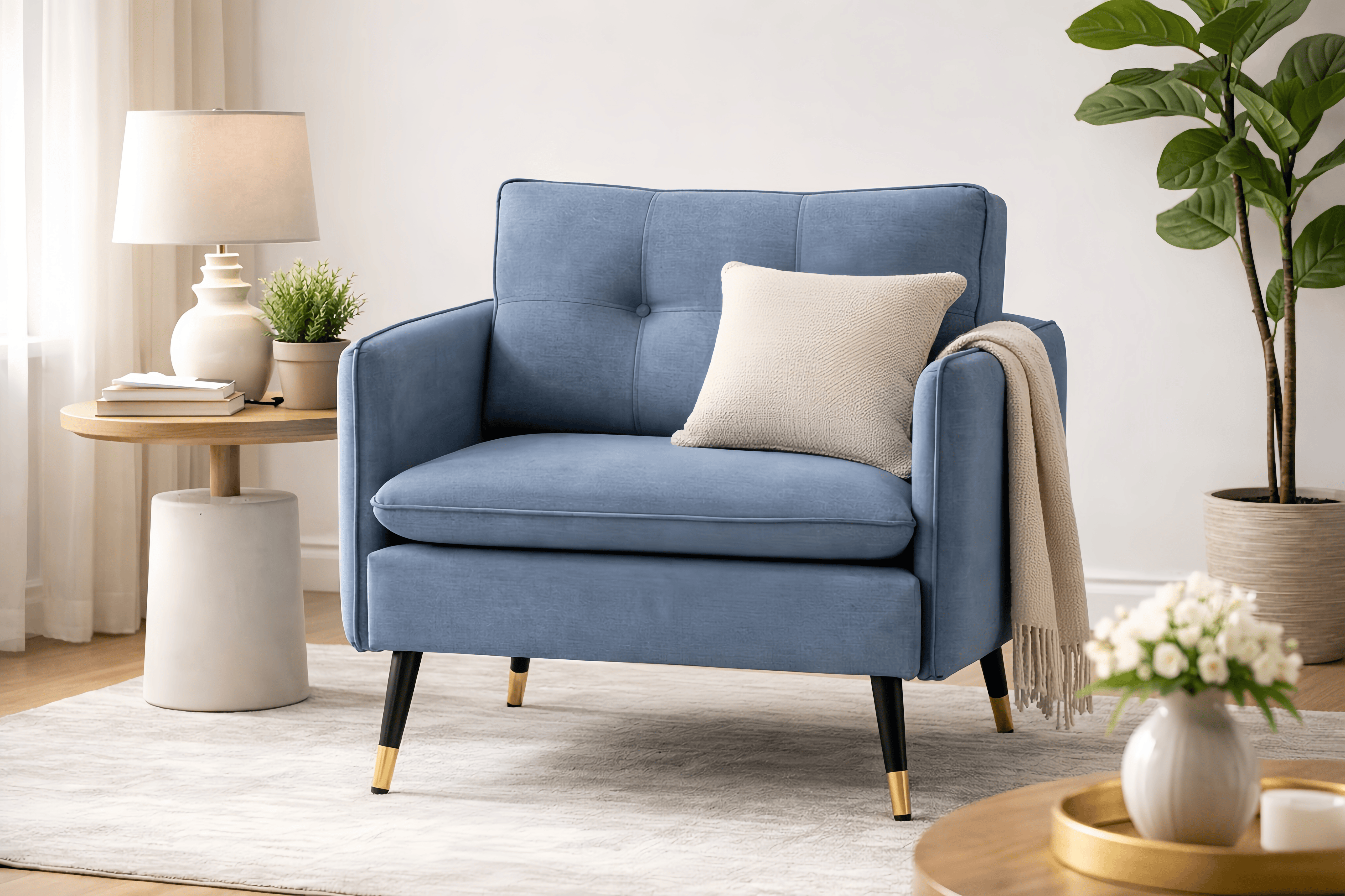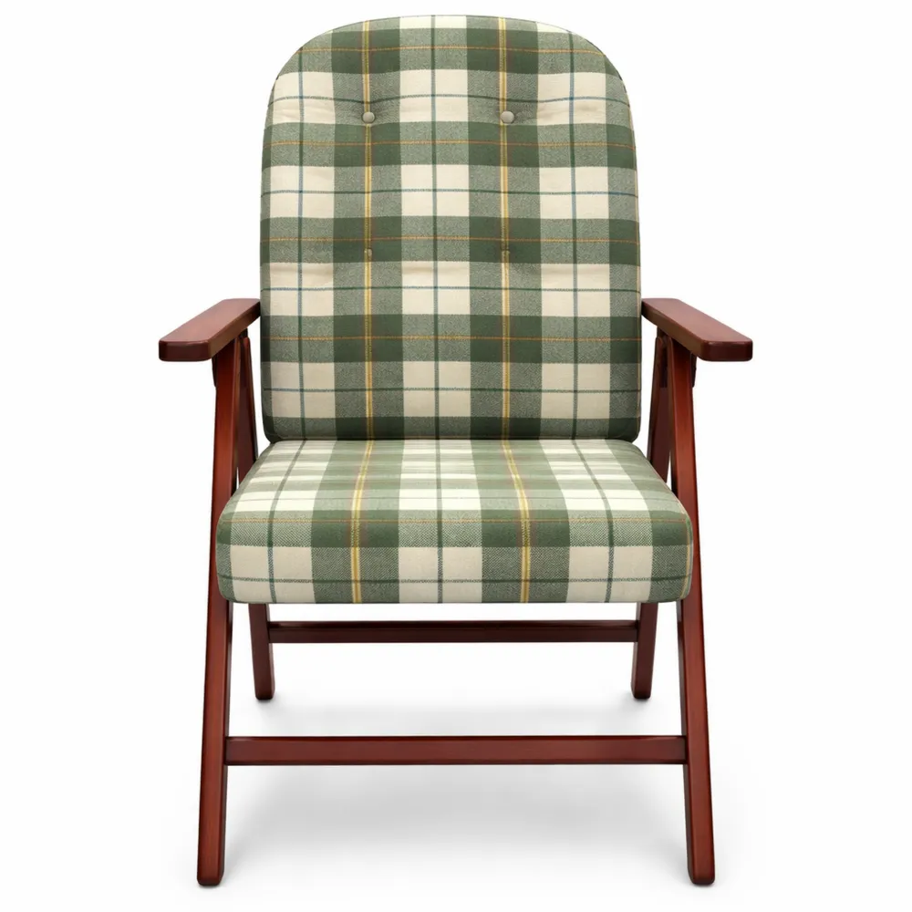Poltrona imbottita con struttura in legno e tessuto verde