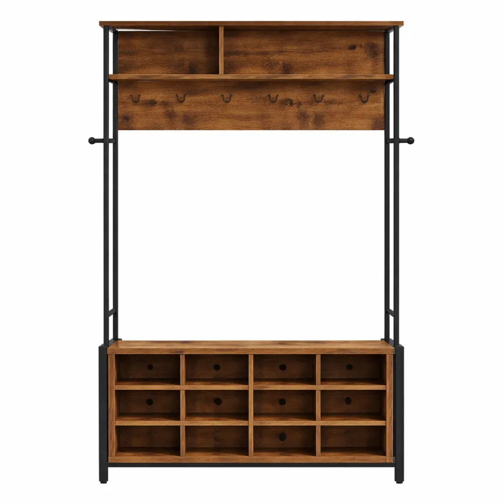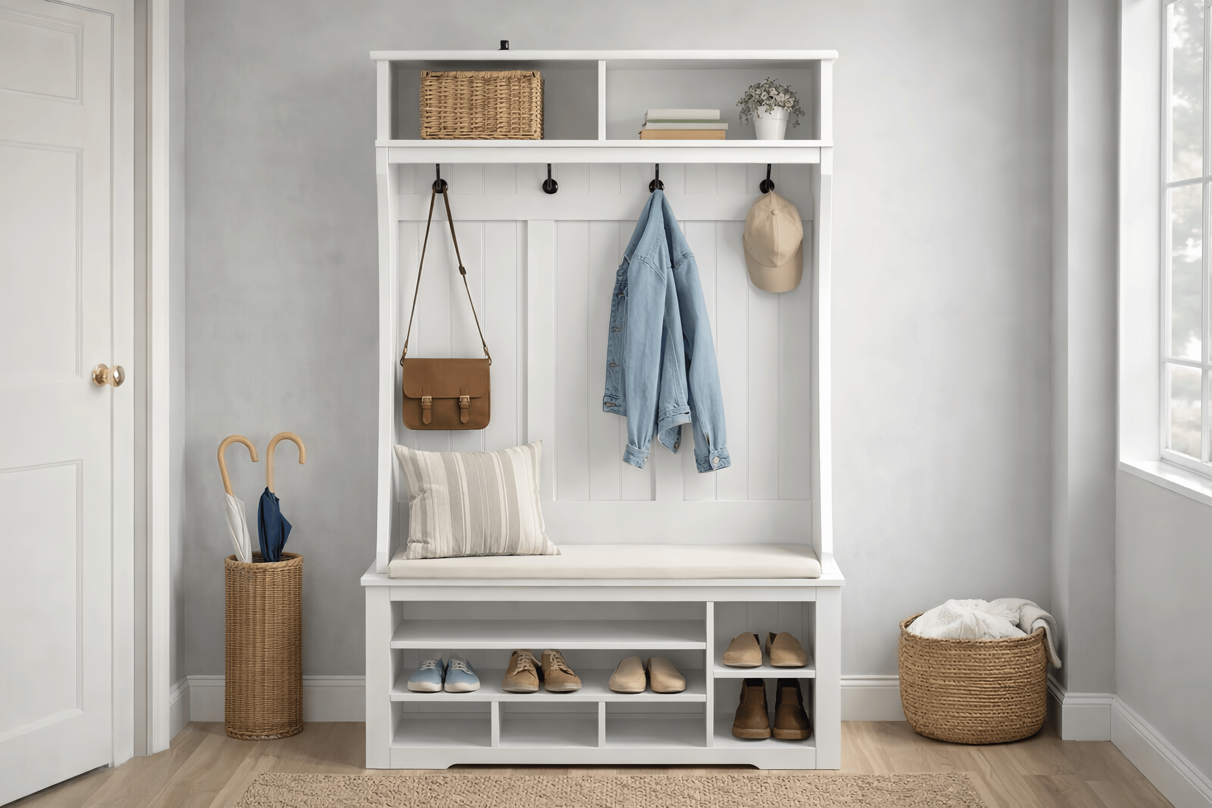 Panca Scarpiera Ingresso con Cuscino e Appendiabiti a Muro